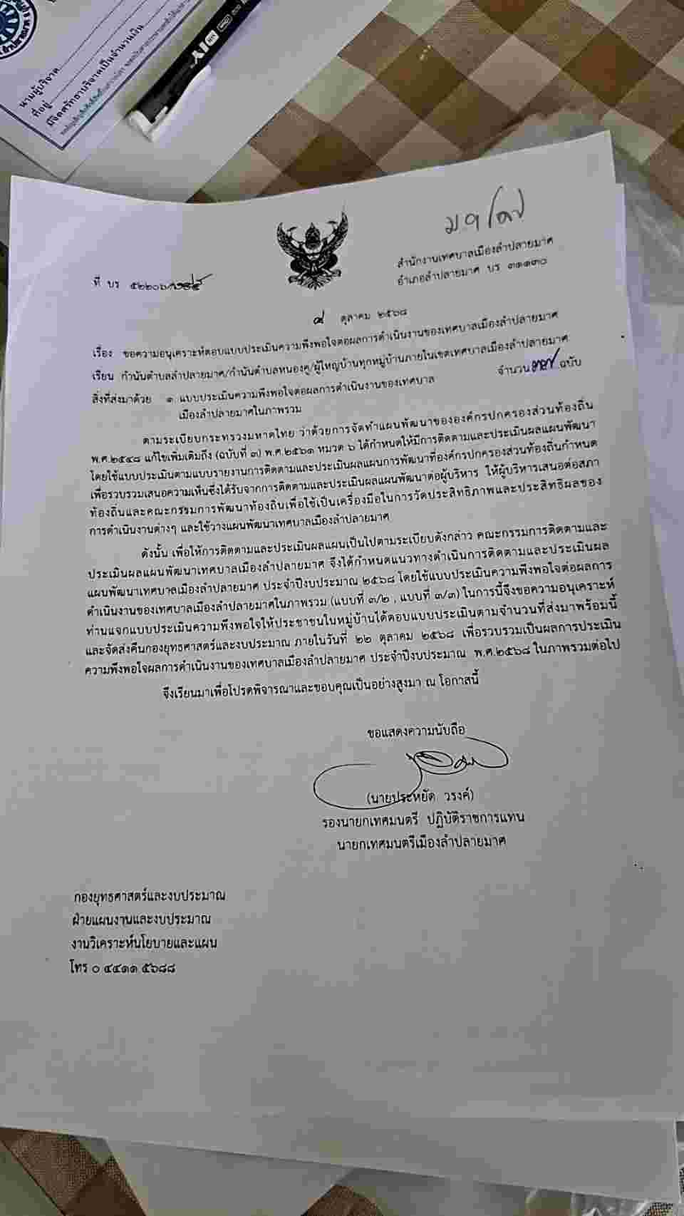 • ได้นำส่งแบบประเมินความพึงพอใจกับกองยุทธศาสตร์เทศบาลแล้ว